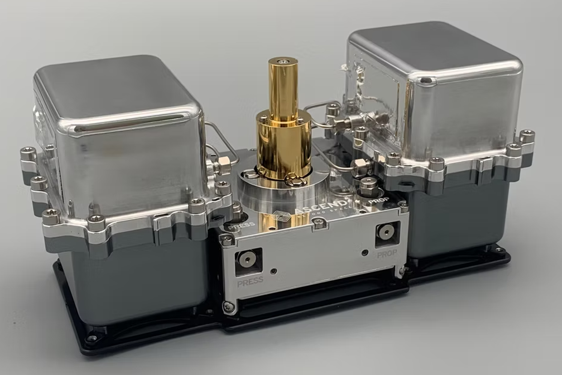 The Ascend propulsion system is a family of fully integrated thermo-resistive, water-based propulsion solutions. Generating thrust using superheated steam, it ensures a safe, robust, and exceptionally reliable propulsion. Engineered as a plug-and-play subsystem, it combines the best aspects of the various propulsion technologies, offering substantially higher thrust than electric propulsion, along with greater simplicity and reliability than chemical thrusters. Ideal for end-of-life de-orbiting applications, its high performance and modularity also makes it a prime choice for other maneuvers, including orbit raising, collision avoidance, and formation flying. Thanks to Ascend Beyond Space's technological advancements, this propulsion system achieves superior thrust and specific impulse, establishing it as the leading water-based propulsion system on the market. Designed for high reliability, with extensive direct and indirect fluidics, electrical, sensor redundancy, making it fully compliant with launcher and ground-safety requirements from all major launch authorities. PERFORMANCE: - Total impulse: 1 kNs, 2 kNs, 5 kNs, 10 kNs, 20 kNs, 30 kNs - Thrust: 10 ... 40 mN (TC control) - Specific impulse: 200 s - Minimum impulse bit: < 10 mNs - Preheating time: < 5 minutes - Thrust duration: continuous - Propellant: H2O INTERFACE: - Supply voltage: 11 V - 34 VDC - Quiescent power: < 1 W - Thrust power: 25 ... 100 W (TC control) - Communication interface: RS-485 - Mechanical interface: 10 x M3 fasteners - Size (starting): 96 mm x 96 mm x 220 mm (2U compatible) - Wet mass (starting): 1600 g ENVIRONMENTAL: Temperature range (operational): +5 °C to +60 °C Temperature range (non-operational): +5 °C to +70 °C (extendable) Radiation: TID > 30 krad Random vibration: 19.9 grms Shock: SRS 1000 g (ECSS-E-ST-10-03C)